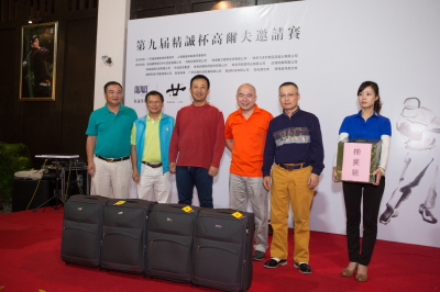 颁奖晚宴在现场演奏的爵士乐中拉开了序幕,本次比赛产生了最远距离奖,最近旗洞奖、净杆冠亚季军、总杆冠军等奖项。值得一提的是本次比赛在第17洞设立了一杆进洞大奖----价值200万元的酒店公寓一套,但比赛结束惊喜并未出现。随着奖项一一揭晓,颁奖现场热闹非凡,获奖球友得到了精美奖杯和奖品,享受着胜利的喜悦。丰富多彩的抽奖环节将整个活动推向高潮,晚宴在欢乐的气氛中落下帷幕,嘉宾们相约下一届“精诚杯”再相聚。