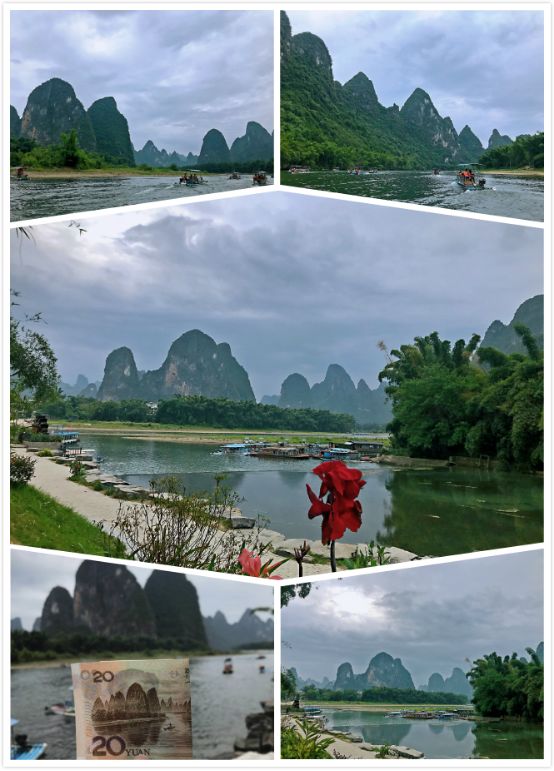 大家乘竹筏泛游漓江,两岸风光千姿百态,可观奇峰倒影、碧水云天,田园人家、呼吸着清新的空气,一切都那么诗情画意,令人心旷神适。大家不断用相机记录漓江的美。人称“百里漓江、百里画廊”,新版20元人民币背面的印刷漓江山水,就在本次旅程的其中一段