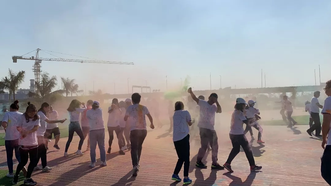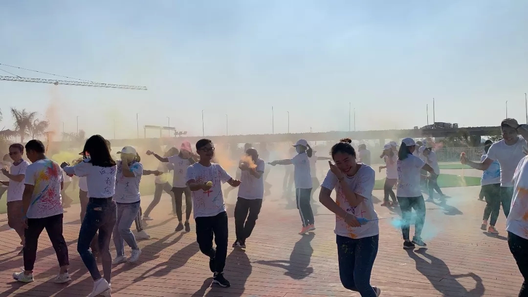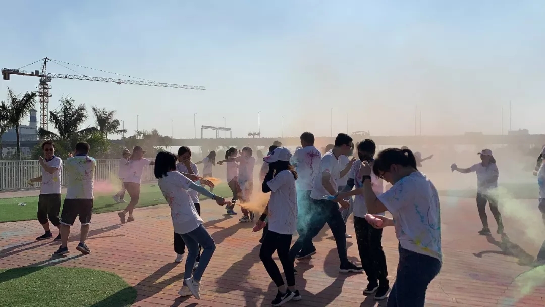 这里不分年龄和性别,没有竞争和对抗,只有欢声和笑语、激情和活力。大家身着白色T恤,彼此撒起炫彩的粉末,焕发彩色的光芒。平时“一本正经”的大家似乎变了一个人,话不多说,上图。