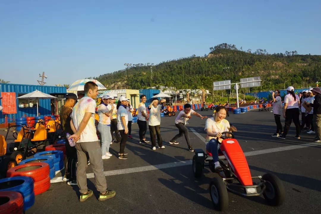 快乐不停歇,精彩不间断,环海竞速是刺激的无动力赛场。在这项活动中,大家不仅要把车开稳、开快,还要在非常“紧张”的接力氛围中将教练交给的猜谜语任务和队友顺利完成,真是不简单。全员参与、精彩配合,增进了彼此间的默契和感情。