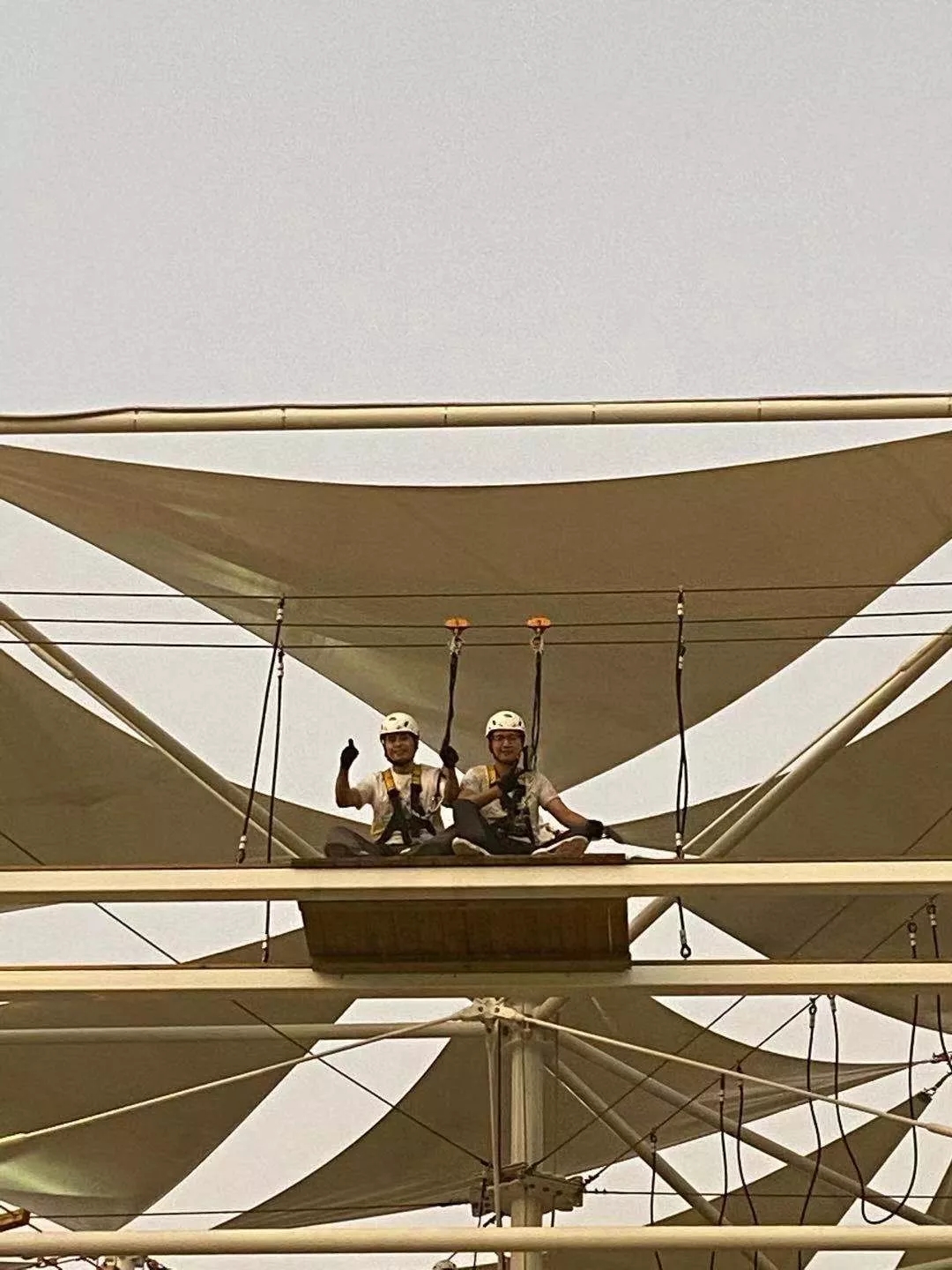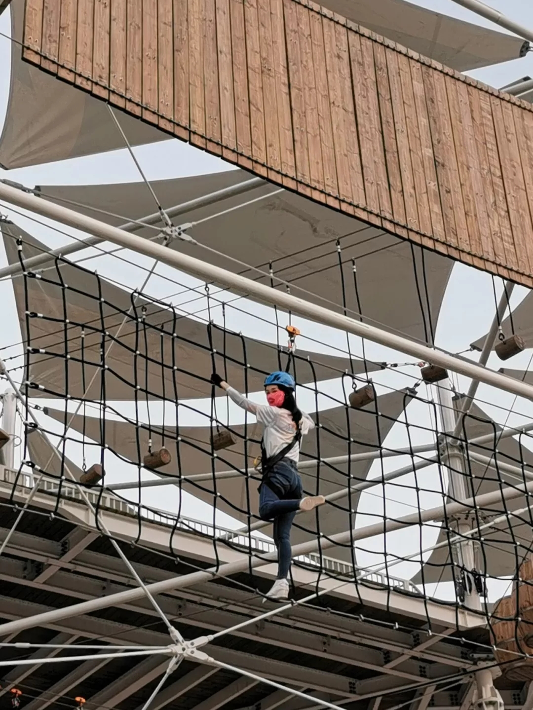 在“玛雅历险”中,有各种各样设施,既紧张刺激又充满欢乐,在攀爬中很有化身成蜘蛛侠的感觉呢!在这项活动中,大家的任务是抢分,便利贴上标注着不同的分数,遍布在设施的各个角落。一方面要求各小组分工明确,另一方面,比拼的是体力和胆量。从过程看,各位美女表现的似乎要好于各位帅哥,这是为什么呢?